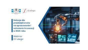 Jeśli planujesz prace B+R lub inwestycję we wdrożenie innowacyjnych technologii – Izba Przemysłowo- Handlowa razem ze Stratego - Doradztwo Europejskie zaprasza na webinar pn. „Dotacje dla przedsiębiorców na opracowanie i wdrożenie innowacji w 2026 roku”. Podczas webinaru dowiesz się jakie dotacje mogą wesprzeć projekty innowacyjne w 2026 r. oraz jak przygotować się do skutecznego aplikowania o środki.